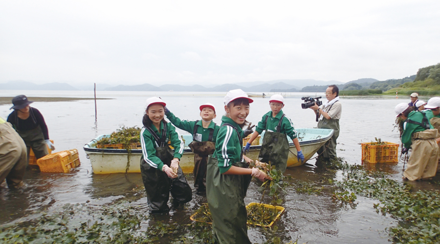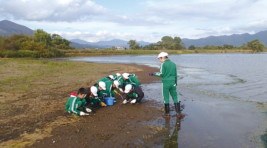 環境保全ボランティアを通して、自身が身近な環境問題に気づき、「自分にできる解決策」を探求するきっかけをつくります。2005年まで水質日本一を誇っていた猪苗代湖ですが、2009年以降は水質ランク外の状態が続いています。現在では自然由来の汚染が主な原因になっているそう。自然が自然を壊すのはなぜか?なぜ均衡が崩れてしまったのか?水辺の生体系や水の社会的利用などへの関心も喚起します。
