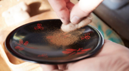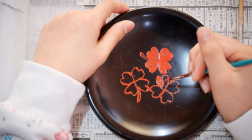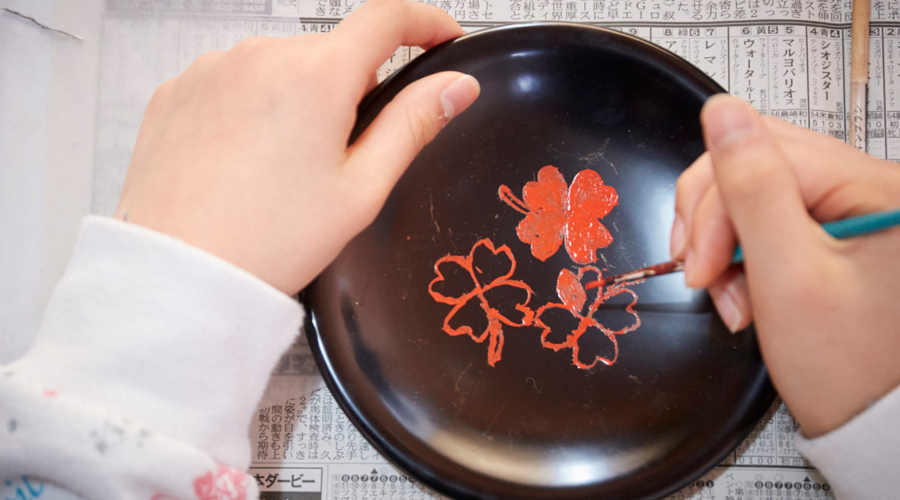 「ものづくり」の楽しさを味わい、地域の歴史や伝統技術へ、漆という植物へと興味を広げることのできるアクティビティです。会津磐梯山エリアは、漆塗りの一大産地。本物の漆を使った伝統的な塗料で食器に絵を描く、なかなかできない経験です。漆はトロリと粘りがあり、丸みのある食器に絵付けをするには集中力が必要。仕上げに金粉・銀粉を撒くと、器の雰囲気がガラリと変わります。職人技を間近に見る経験、自ら作る体験は、昔人の知恵や職人の手間を知り、モノの価値を改めて理解する糸口となるはずです。ガラスの膜をまとったような漆の器は、美しくてとても丈夫。おうちで長く使ってください。